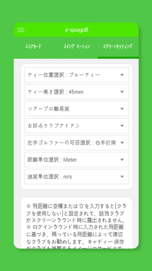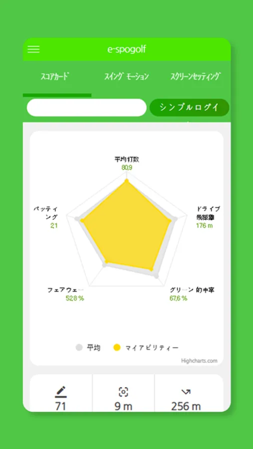 - シミュレーションゴルフの練習データとスイング映像、そしてスコアカードを提供します。