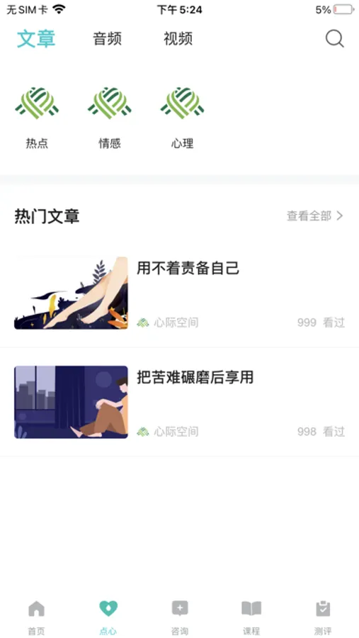 展示丰富的文章、音乐和视频内容,通过针对性的内容素材加深对自身和心理学的了解。