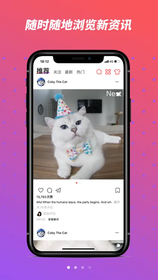 沉浸式体验:上下滑动发现新资讯、新内容、新启发,发现新世界