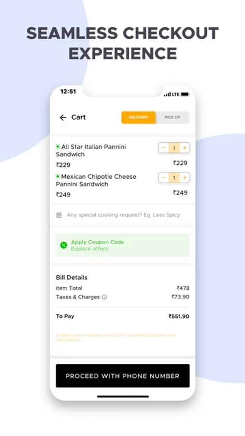 *Easy order customization -- Order from our wide range of menu and easy customisation options and addons.