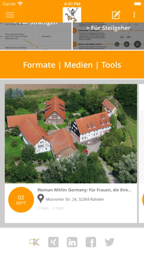Darüber hinaus bietet die App weitere nützliche Funktionen: Die "Suche" ermöglicht einen schnellen Zugang zu den von dir gewünschten Informationen. Die Kachel "Formate, Medien, Tools" listet alphabetisch sortiert alle Inhalte. Und der Bereich "Workshops" weist dich auf aktuelle Termine und Fortbildungsmöglichkeiten hin.