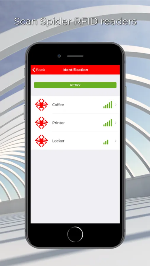 With the Spider ID app, you can easily access buildings or secure devices with your phone. Think of an access point, a printer at a school or a coffee machine at the office which is equipped with the Spider RFID, NFC & BLE reader. No more hassle with authentication via your student or employee card. With your smartphone you can access any location or device!