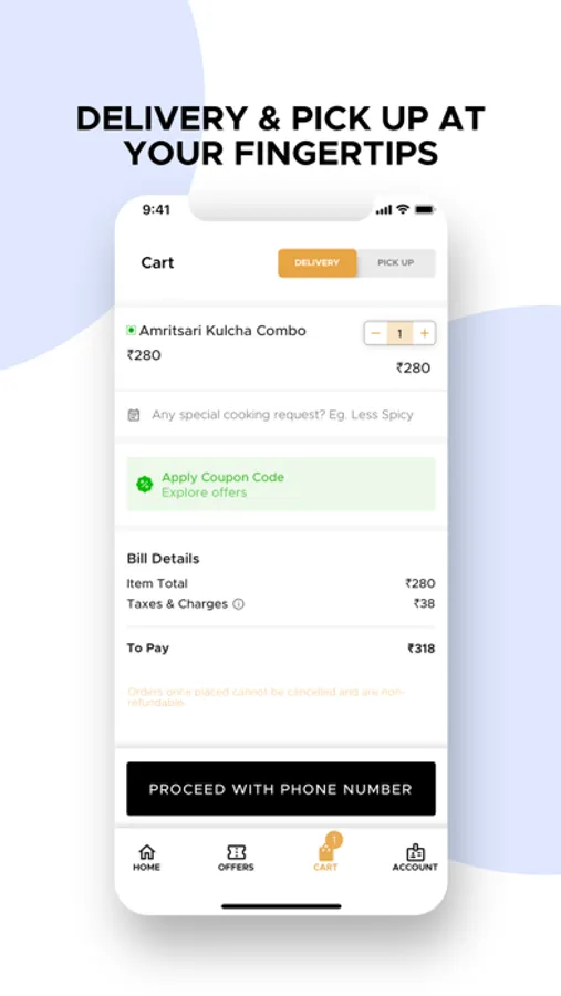 *Easy order customization -- Order from our wide range of menu and easy customisation options and addons.