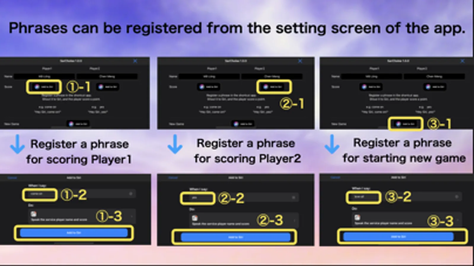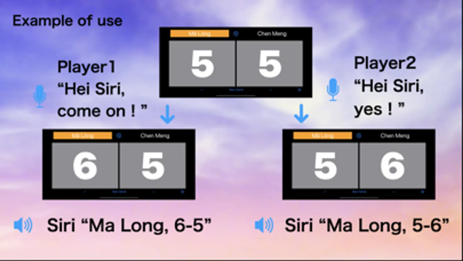 - When Siri accepts voice operation, the app responds the service player and the score by voice.