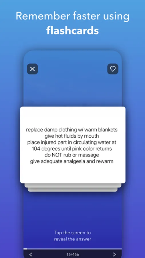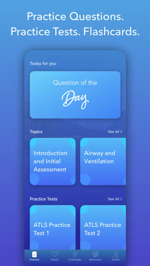 Swipe the cards to quickly review ATLS concepts without the need to go through the whole test, complete the right amount of questions for you, and get some quick studying in.