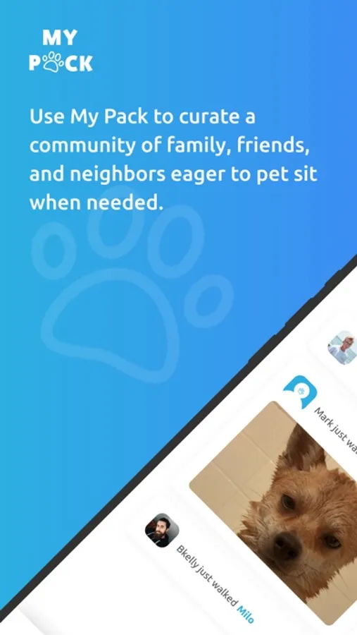 My Pack is for everyone, whether you're a pet owner yourself or just friends with one. My Pack empowers pet parents to create their own support systems and self-curated a community (or pack) of family, friends, and neighbors they trust to look after their pet when they travel, share important health information and instructions for a successful pet sitting, or just check-in for a dog park playdate.