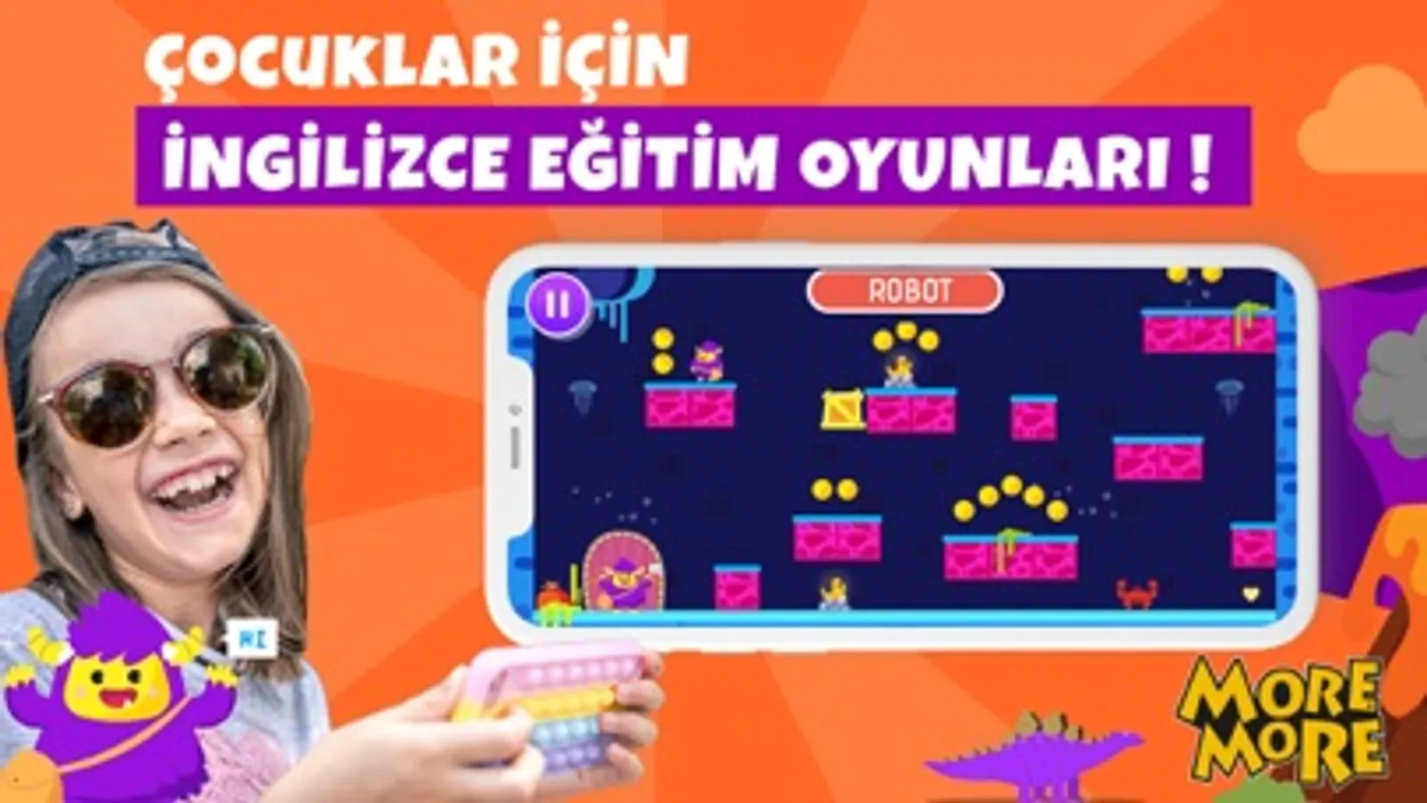 Play More 6. Sınıf Dijital Eğitim Platformu yıl boyunca çocuğunuzun elinizden düşmeyecek bir uygulama olacak. Yıl içerisinde yapılacak güncellemelerle birlikte 6. sınıflar için en iyi ingilizce uygulamasına şimdiden sahip olun. 100 adet oyuna sahip uygulamamız ile sıkılmadan bol tekrar yapacaksınız. Milli eğitim müfredatına tamamen uygun bu uygulama ile çocuğunuz İngilizceyi eğlenerek öğrenecek. Her yıl uygulamaya eklenecek sürprizlere hazır olun. İngilizce eğitiminde geliştirdiğimiz dijital oyun temelli yöntem ile çocuğunuz 4 beceriye (okuma, yazma, dinleme ve konuşma) göre kendini test edebilecek. Kurmay Yayınları için labla projesiyle geliştirilmiştir.