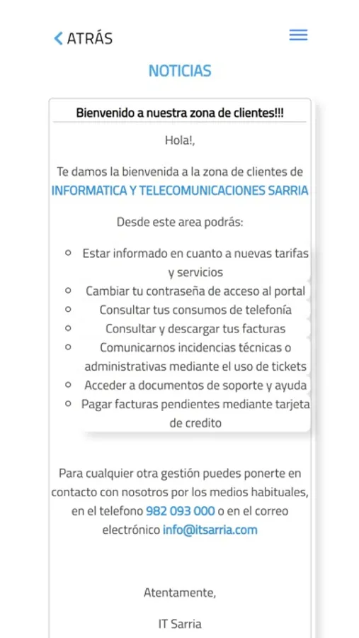 Desde nuestra App podrá realizar multitud de gestiones con Its desde la comodidad de su hogar, como ver sus contratos activos, visualizar su consumo, descargar facturas, abrir tickets de soporte y muchas más opciones.