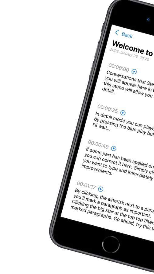 Open the steno, listen back to the audio, edit the notes, and also copy parts of the notes for your needs.