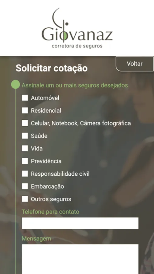 O Giovanaz é um aplicativo que permite você a consultar no smartphone, de maneira rápida, simples e intuitiva, as principais informações dos seus seguros de Auto, Residência, Vida que foram contratadas pelo seu corretor de seguros.