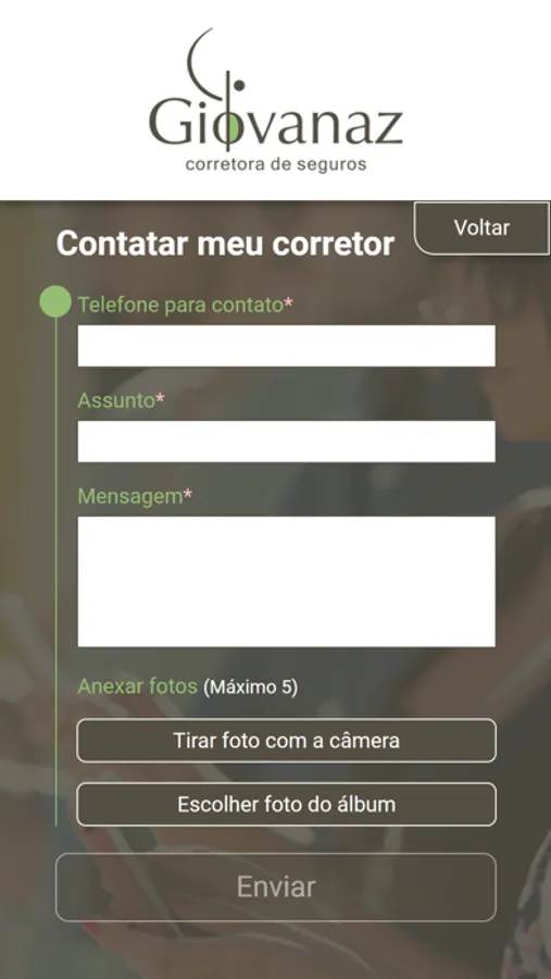 * Enviar fotos/imagens do sinistros ou documentos;