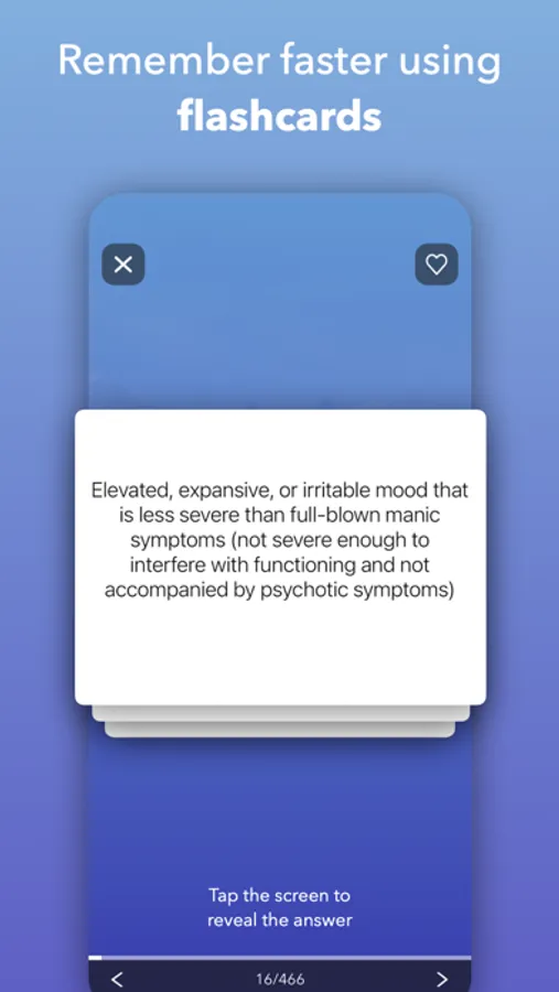 Swipe the cards to quickly review ASWB MSW concepts without the need to go through the whole test, complete the right amount of questions for you, and get some quick studying in.