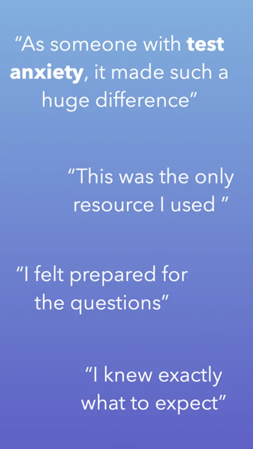 Zen Prep is the #1 app for passing your exam, WITHOUT stress and anxiety. You will experience better exam practice, lower stress, and less anxiety with our step-by-step training, exam simulators, motivation programs, exam resources, and tips and tricks. Zen Prep is recommended by top teachers and mental health experts.