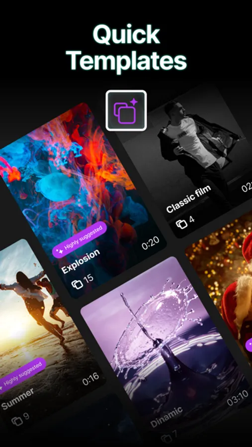 - Select from a range of Templates for intros, outros, and transitions, giving your videos a polished edge.