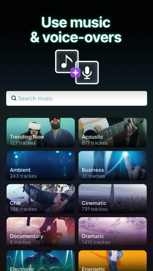 - Choose fun sound effects from a library of 14 unique categories, such as ambient, action, or cheers and applause.