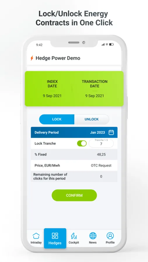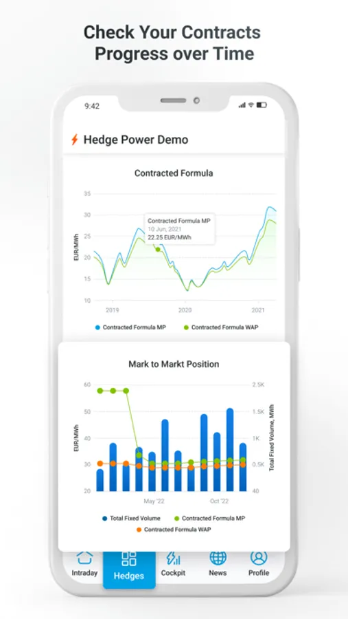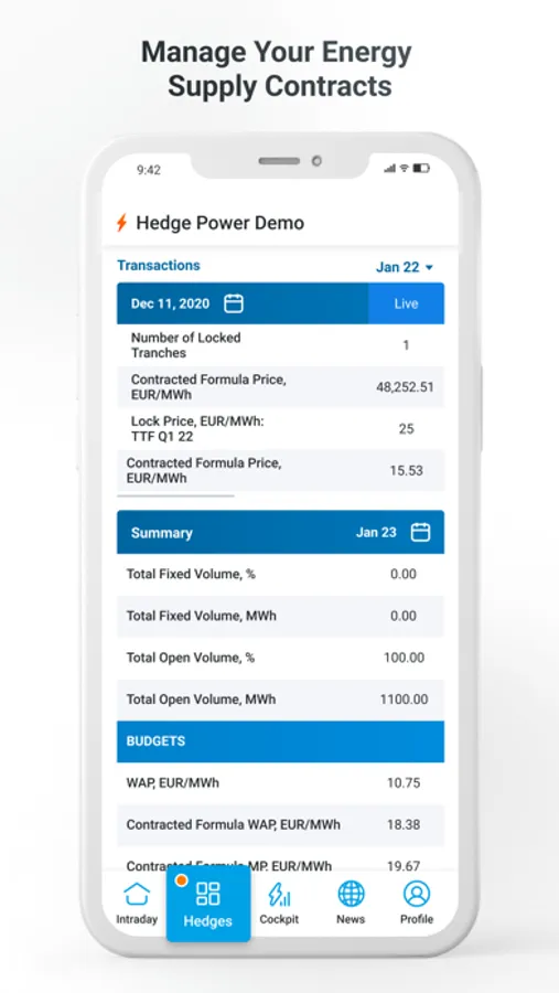 Live & Settlement Transactions between Energy suppliers and End user fully digitized.Taking positions online, locking volumes, unlocking volumes, in a very easy way, even with complex contracts.