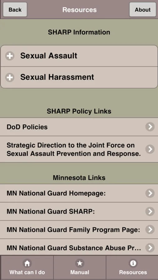 This app is to support the TRADOC Sexual Harassment/Assault Response and Prevention (SHARP) campaign plan which is designed to reduce with the goal of eliminating sexual harassment and sexual assault from our ranks. This is one of many initiatives developed to ensure that every member of our TRADOC family serves in a safe environment, free from sexual harassment and sexual assault.