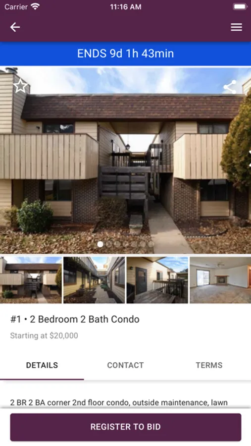 This dynamic app allows you to (1) stay informed about our upcoming auctions; (2) view properties that interest you; (3) get notifications when you've been outbid; (4) bid no matter where you are located (or set and forget your maximum bid to let our platform automatically bid the lowest possible winning bid for you). This is the go-to-source for up-to-the-minute information on all of our auctions.