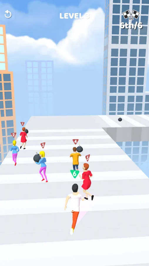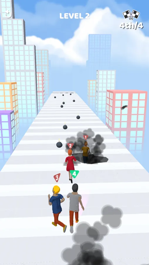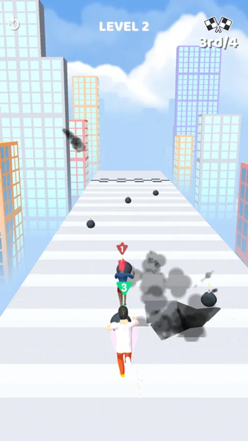 Defeat all your rivals in the running race. You didn't think the game just was that , did you? There are bombs everywhere. Not only do your opponents dodge bombs, they also throw them at you. How would you like to answer them?