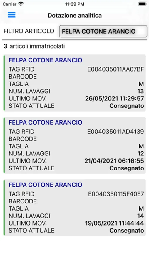 L' App fa parte di una piattaforma software in uso dalla lavanderia che tramite TAG RFID inserito nell'abito, permette la gestione e la tracciabilità dell'intero flusso operativo di lavanderia senza errori.