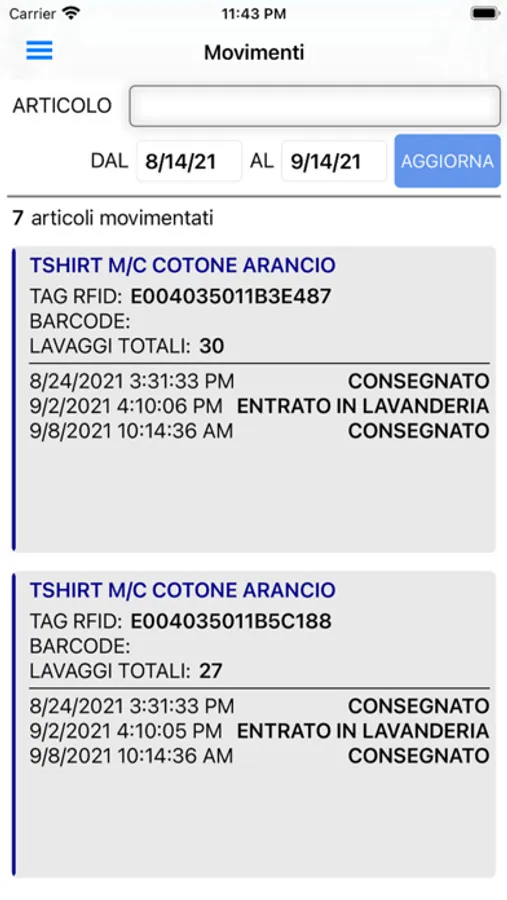 Questa App consente di monitorare e tracciare la movimentazione dei propri abiti da lavoro o abiti personali da e per la lavanderia.