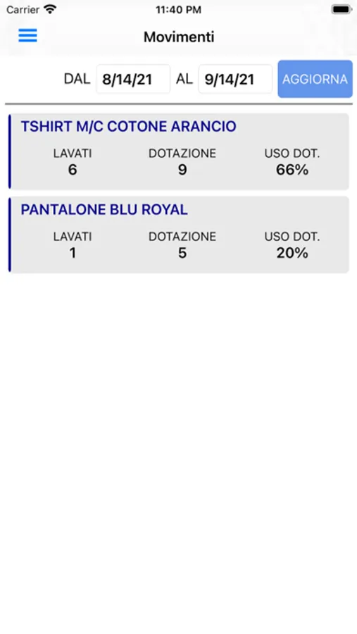 L' utente che scarica l'APP ha così la possibilità di controllare gli abiti inviati alla lavanderia, le quantità inviate e la propria dotazione.