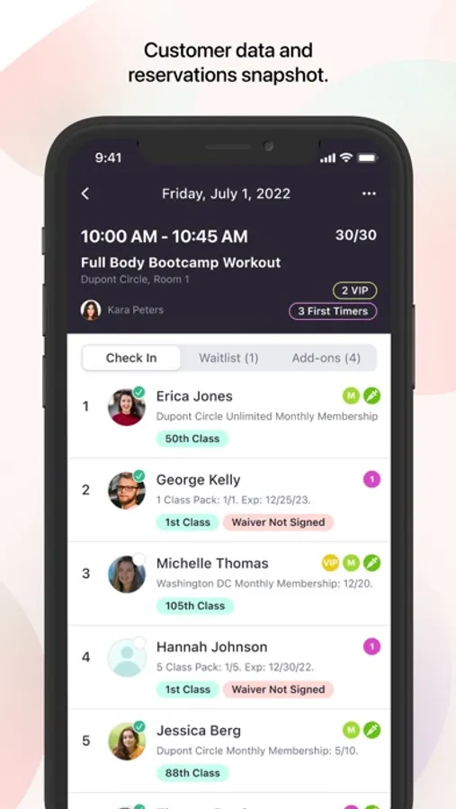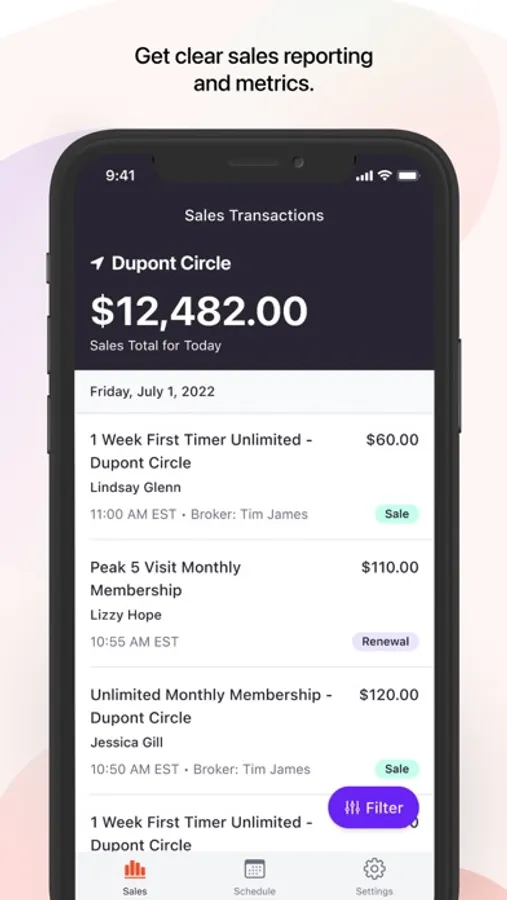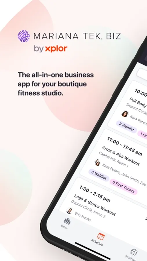 With Biz, use key Mariana Tek features you know and love easily on your iPhone and iPad. Review sales, access staff schedules, and manage reservations all at your fingertips. Empower team members to stay in sync through Biz, where they can see their schedules and connect with members.