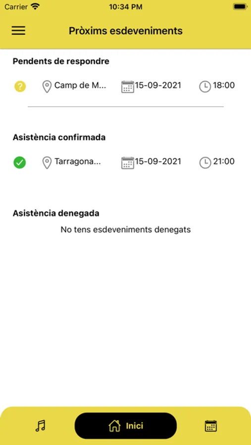 Amb aquesta aplicació podras donar resposta a la teva assistència a qualsevol dels pròxims esdeveniments, així com estar al dia d'aquests.