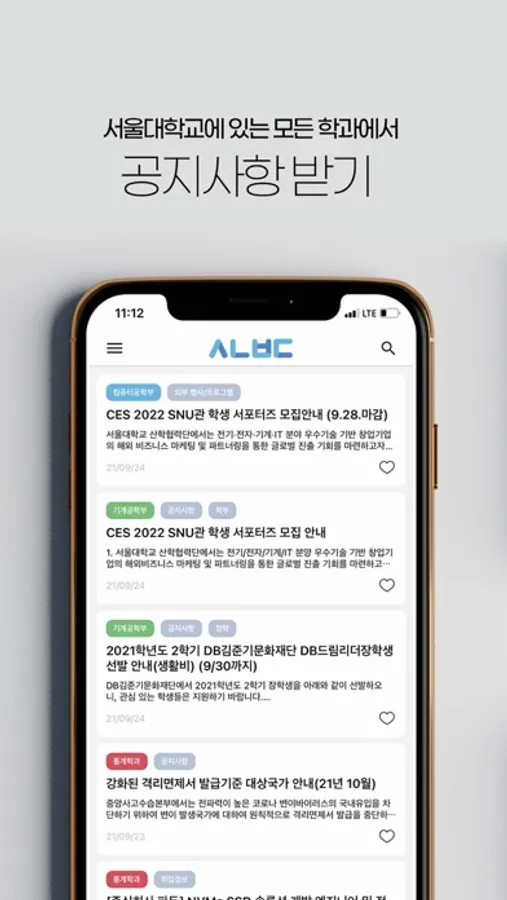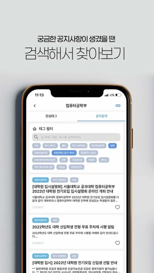 2) 학과나 태그별로 공지사항을 따로 모아볼 수 있어요.