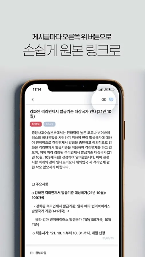 5) 모바일 앱 안에서 자세한 공지사항의 내용을 확인하고 첨부파일을 다운받을 수 있어요.
