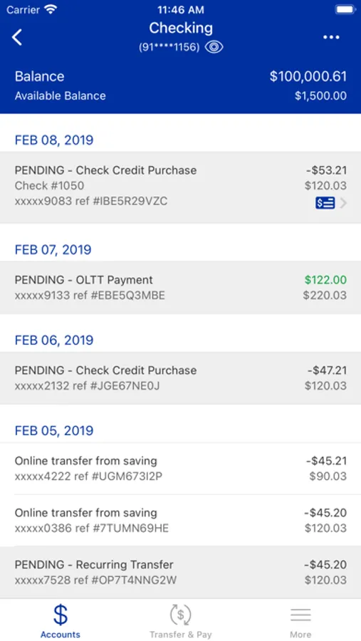 • View recent transactions and pending deposits