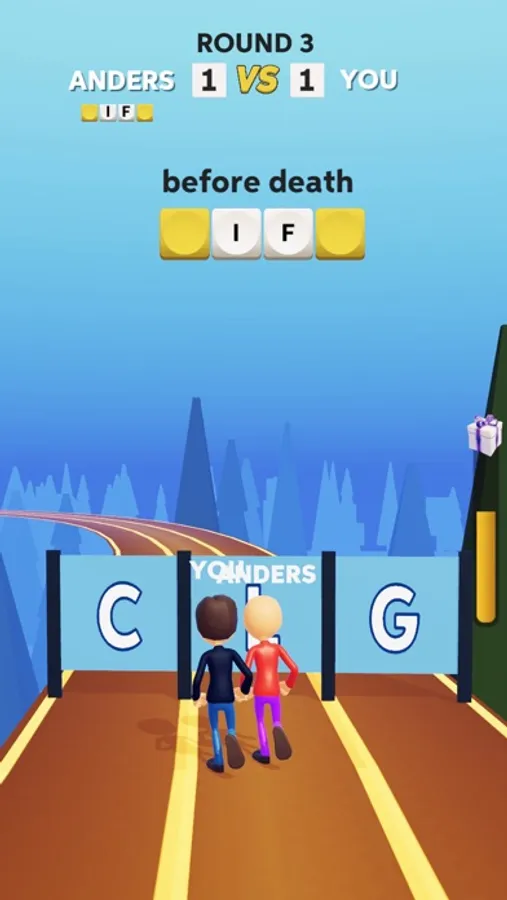 Go through the door with the correct letter to complete the word before your opponent. Earn new letters by collecting bonuses and try to rise in the ranking by eliminating your opponent. A runner game with a unique gameplay and impressive graphics.