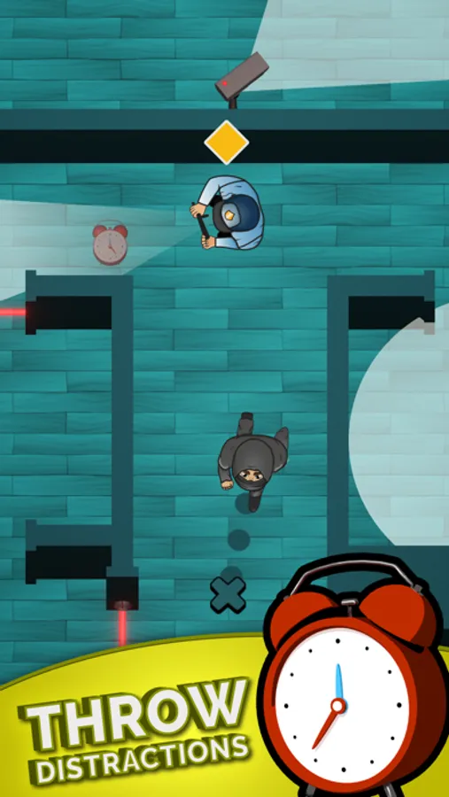 DEVISE STRATEGIES — Observe the movement of your foes and wait for the opportune moment to tiptoe past them. Or … put on a uniform to fool guards, hack the alarm system to temporarily disable all security equipment, or throw an alarm clock to distract nearby foes!