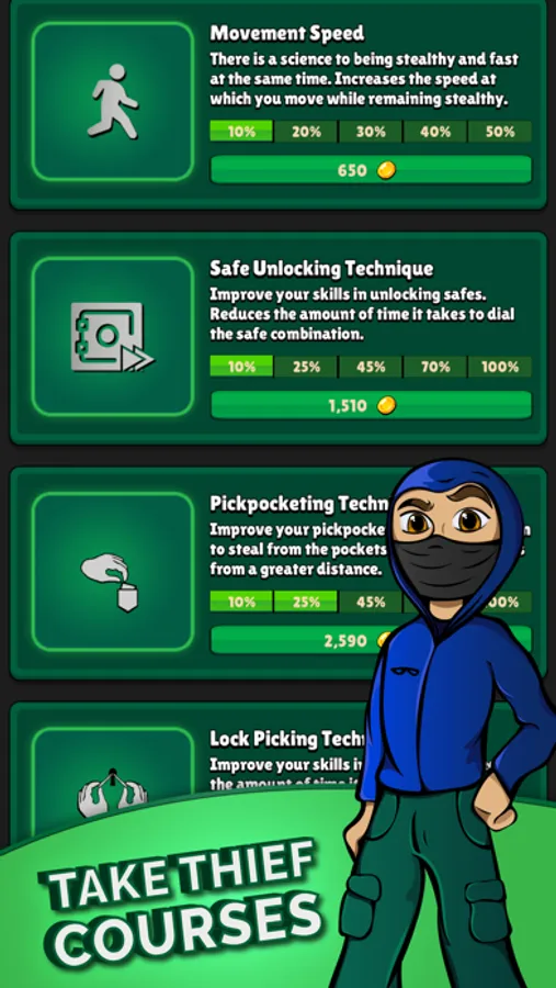 BECOME A MASTER THIEF — Looking to improve your skills in carrying out thievish activities? Buy access to and participate in thieving courses!