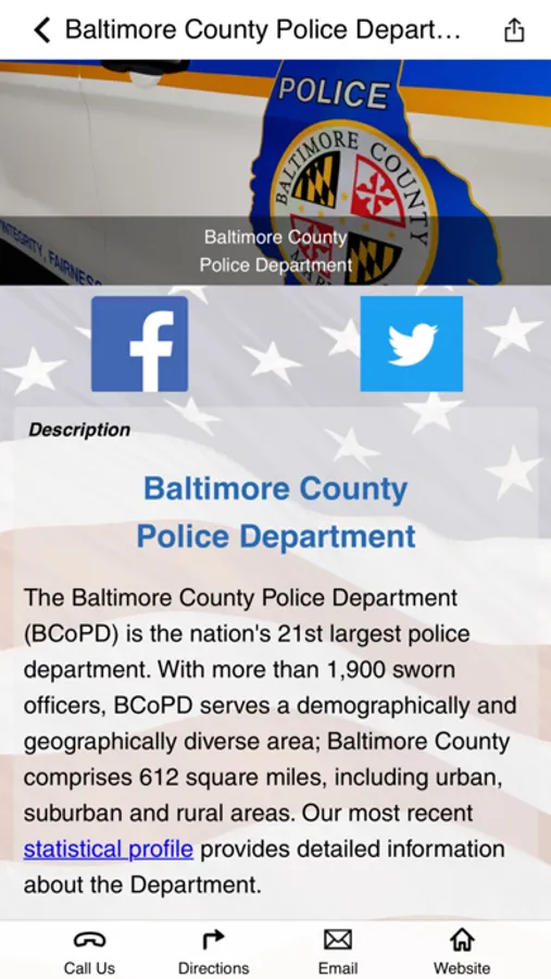 On behalf of the men and women of the Baltimore County Police Department, welcome to our app. This app is for the employees and family members of the Baltimore County Police Department and the community it serves. It contains information about our department as well as safety and crime prevention tips. Baltimore County Police Department employees and family members will have access to a full range of wellness tools.