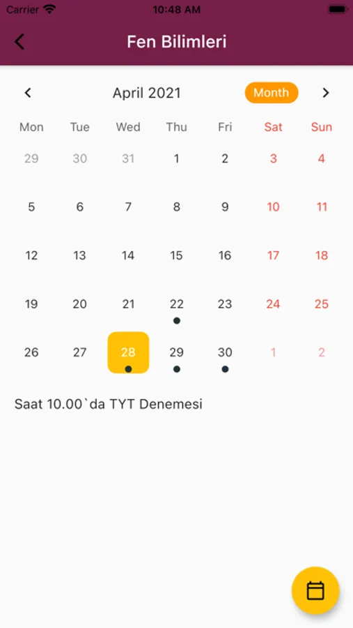 * YKS denemeleri gibi önemli günleri takip edebilirsin,