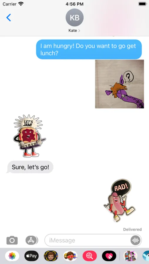 • Use stickers in chat—Tap to send, or touch and hold to put stickers on top of a bubble, other stickers, photos, and videos.