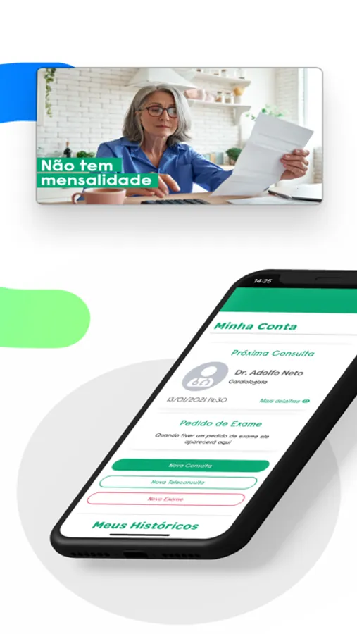 Além do acesso aos melhores médicos e clínicas, terá acesso rápido e fácil as suas receitas, fórmulas, resultados de exames e muito mais.
