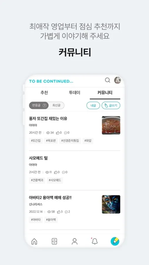 - 최애작 영업부터 점심 메뉴 추천까지! 어떤 글도 가능합니다.