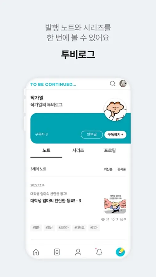 - 만화, 소설, 리뷰, 지식, 취미까지 가볍게 써보고 창작 수익을 얻어보세요.