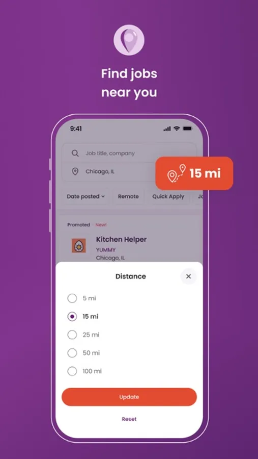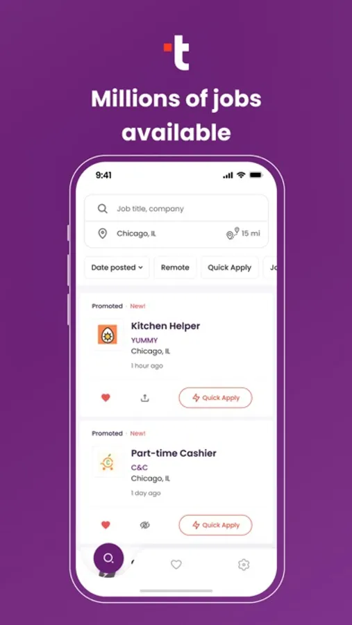 2. Customize your job search by filtering results by location, distance, date posted, and Quick Apply.