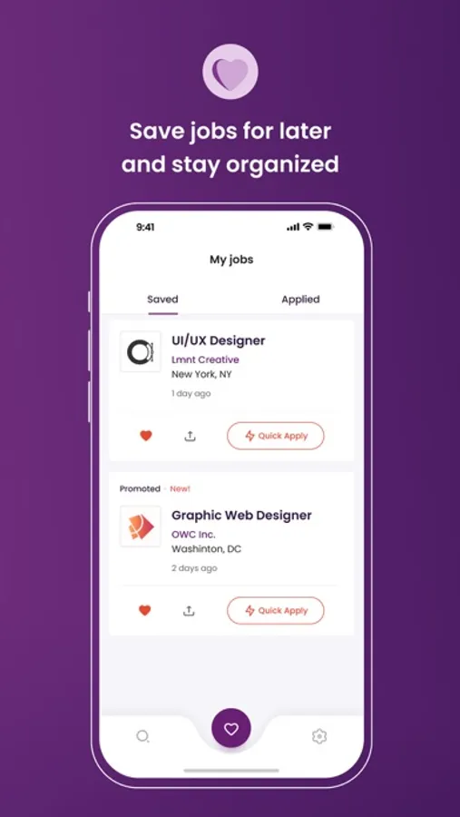 4. Save jobs you love for later and review the ones you've applied to at any time.