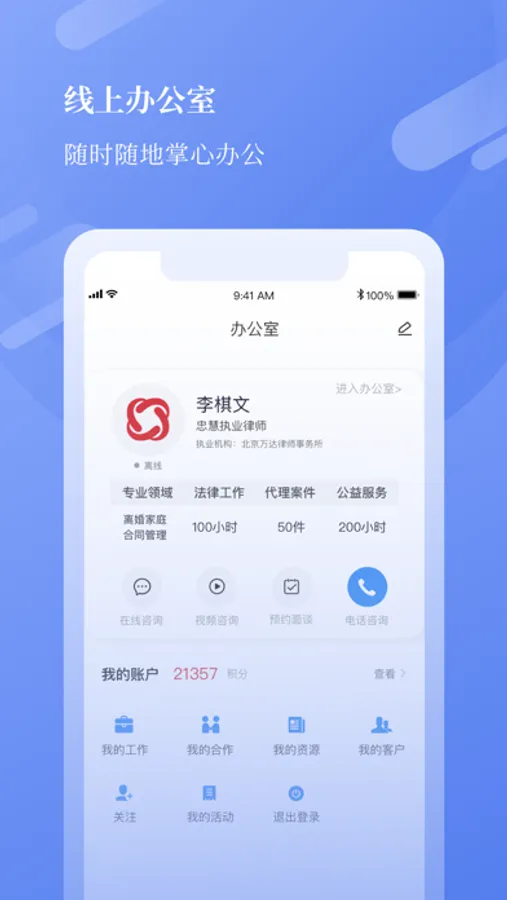 忠慧律所app作为忠慧互联网开放律师事务所的移动载体,是首家完全依托互联网运营的律师事务所,旨在打破传统法律服务模式的局限,利用互联网技术,实现跨时区、跨地域、跨律所、跨专业、跨行业的法律服务资源整合,聚合全国律师资源。同时,为广大律师提供学习成长、专业交流、业务合作、共谋发展的平台,成就较传统律所更优秀的专业律师团队。