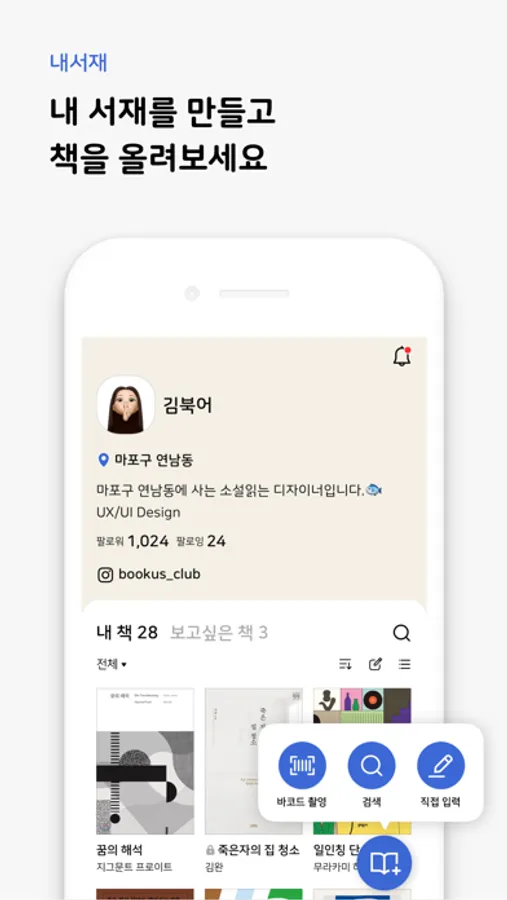 1. 북어스는 위치 기반의 개인 서재 계정을 만들 수 있습니다.