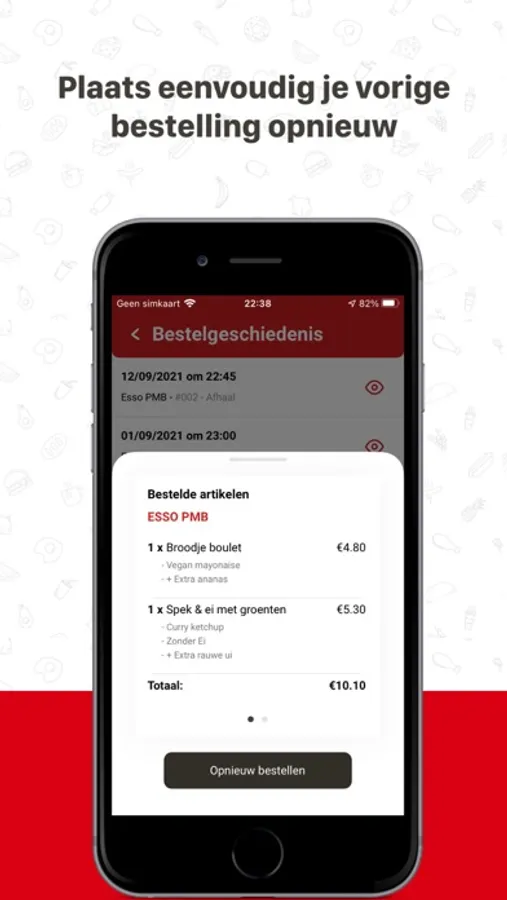 Via de favorieten functie of je bestelgeschiedenis ben je slechts enkele vingerdrukken verwijderd van een nieuwe bestelling. Echt handig!