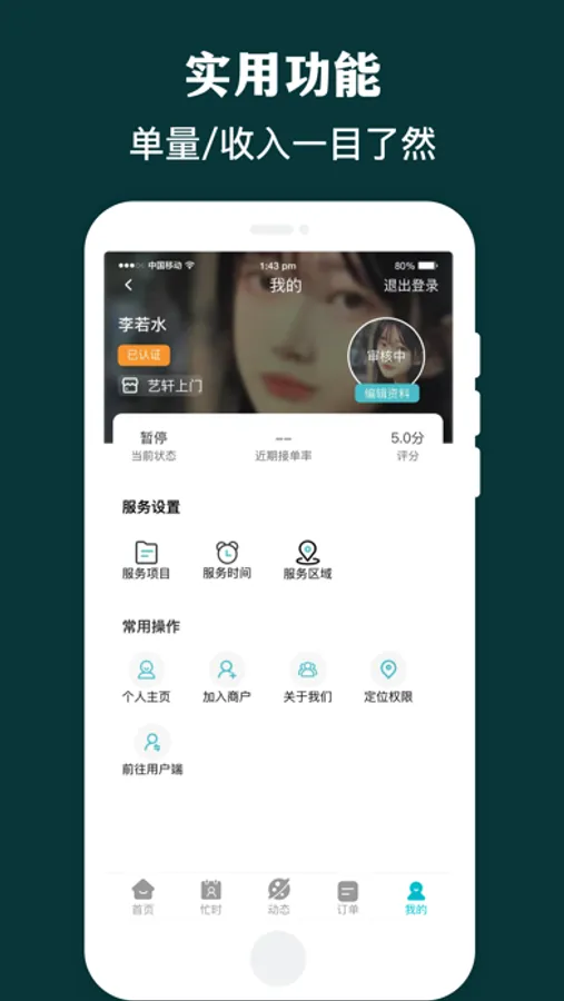 应约接单是一个服务于按摩技师的接单工具,致力于为技师提升线上接单能力和处理订单的能力。使用应约接单你可以实时定位,不用坐班,在线接单。