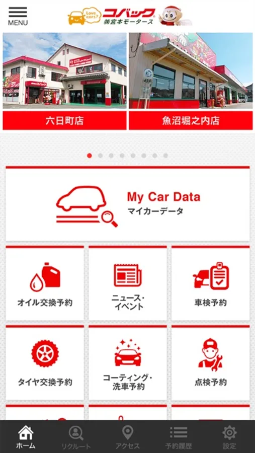 一度店舗へご来店いただきお車の登録がある場合、アプリに必要情報を入力していただくと、ご自身のお車の車検時期などがアプリ上でご確認いただけます!