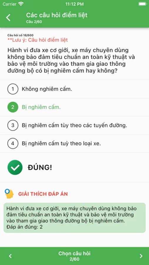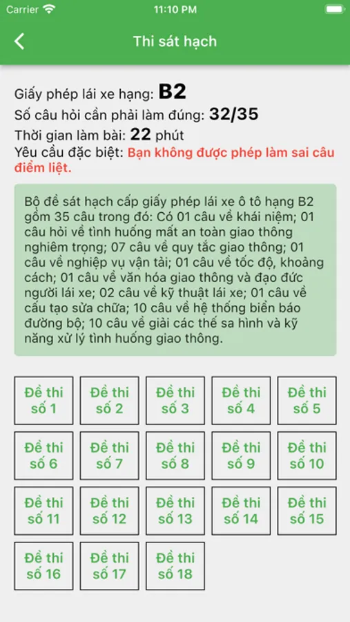 - Đề thi sát với thực tế, kết quả các câu trả lời là chính xác, bạn sẽ kiểm tra được kết quả đậu hay rớt rõ ràng.