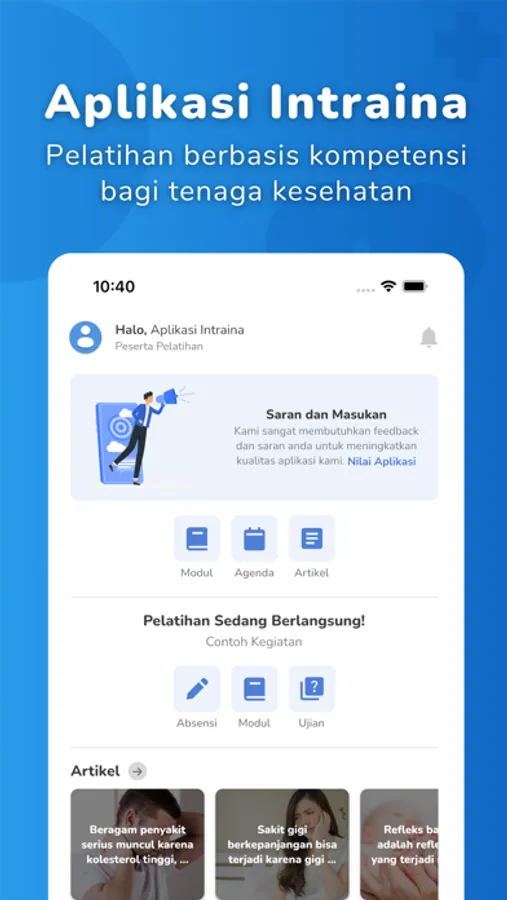 Untuk peserta pelatihan intraina dapat mendownload aplikasi ini untuk mengakses e-sertifikat dan modul pelatihan yang diikuti