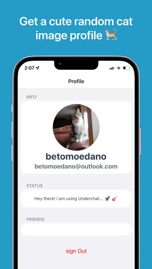 UnderChat is a multi-user chat application that allows users to add friends by quickly searching their username, can add profile pictures, update statuses, and provides authentication.